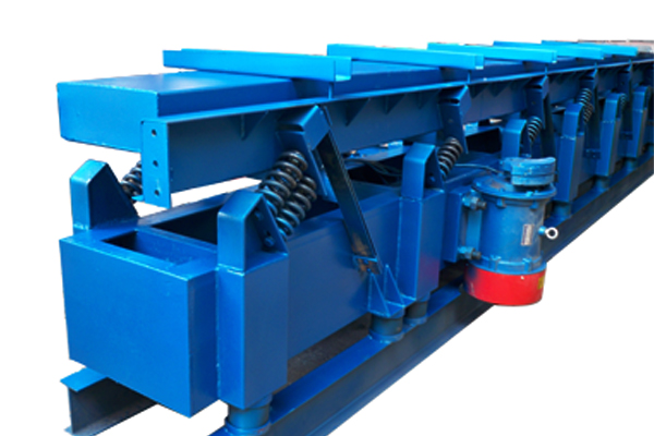 彈性連桿式輸送機是一種近共振類振動機,是利用偏心軸(亦稱曲柄)的回轉(zhuǎn),通過驅(qū)動連桿和主振動彈簧來帶動參振槽體實現(xiàn)直線往復運動,而達到物料輸送的一種振動輸送機。彈性連桿式輸送機是一種實用性很強的振動輸送機,該機在振動狀態(tài)時具有平穩(wěn)性和可靠性。彈性連桿式振動輸送機具有低頻率大振幅特點。